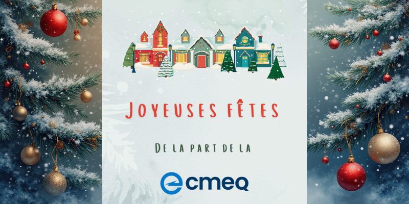 À l’occasion du congé des fêtes, les bureaux de la CMEQ seront fermés à partir du mardi 23 décembre, dès 16 h 30. Les activités reprendront le lundi 5 janvier à 8 h 30.