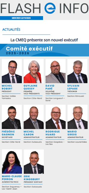 Diffusé chaque mercredi, FLASH INFO informe les membres de la Corporation des dernières nouvelles et mises à jour de l’industrie.