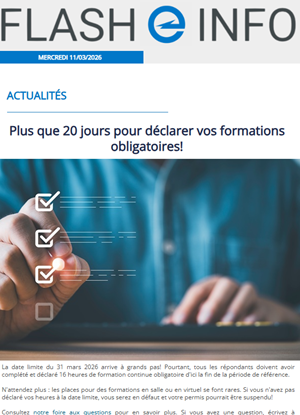 Diffusé chaque mercredi, FLASH INFO informe les membres de la Corporation des dernières nouvelles et mises à jour de l’industrie.