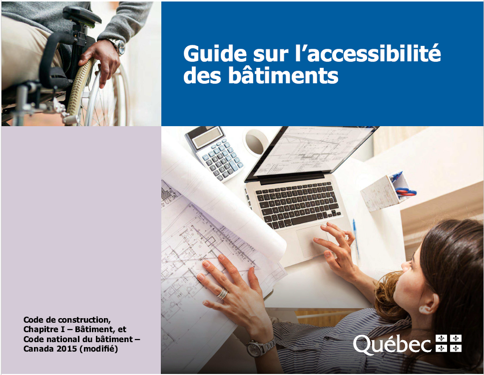 Le Guide sur l’accessibilité des bâtiments, produit dans le cadre de la Politique gouvernementale de prévention en santé du gouvernement du Québec, a été publié à la suite de la dernière révision du chapitre I, Bâtiment, du Code de construction du Québec. Conçu à l’origine pour les concepteurs, architectes, entrepreneurs et autres intervenants du milieu de la construction, ce guide sert également de référence à toute personne désireuse de promouvoir un environnement bâti accessible à tous.