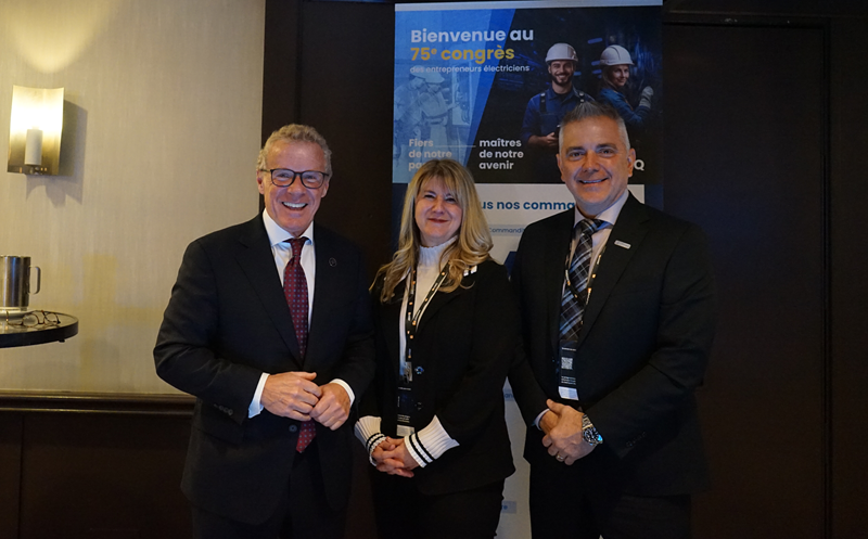Le ministre du Travail, Jean Boulet, était présent afin de souligner l'importance du rôle de la CMEQ pour assurer la compétence et la rigueur des électriciennes et électriciens de partout au Québec. Il a fait état des efforts pour former plus de main-d’œuvre et du projet de loi 76 visant à accroître la qualité de la construction et la sécurité du public.